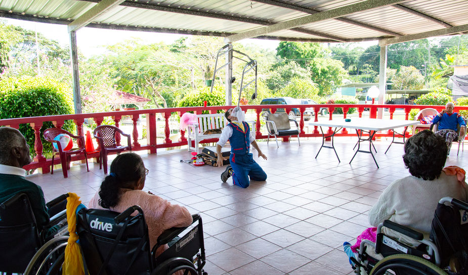 In 2016, Cornerstone Belize set up a couple of wonderful shows for us in San Ignacio, Belize. There was a great contrast between the 500 energetic kids on the hillside of the Sacred Heart School and the quieter setting of the Octavia Waight Center, but they were both perfect places for Clown the World. On the hillside, the sound system was so far away that Vanessa had to control the music and thus wasn't freed up to take many photos, but she still got some great shots from above.
